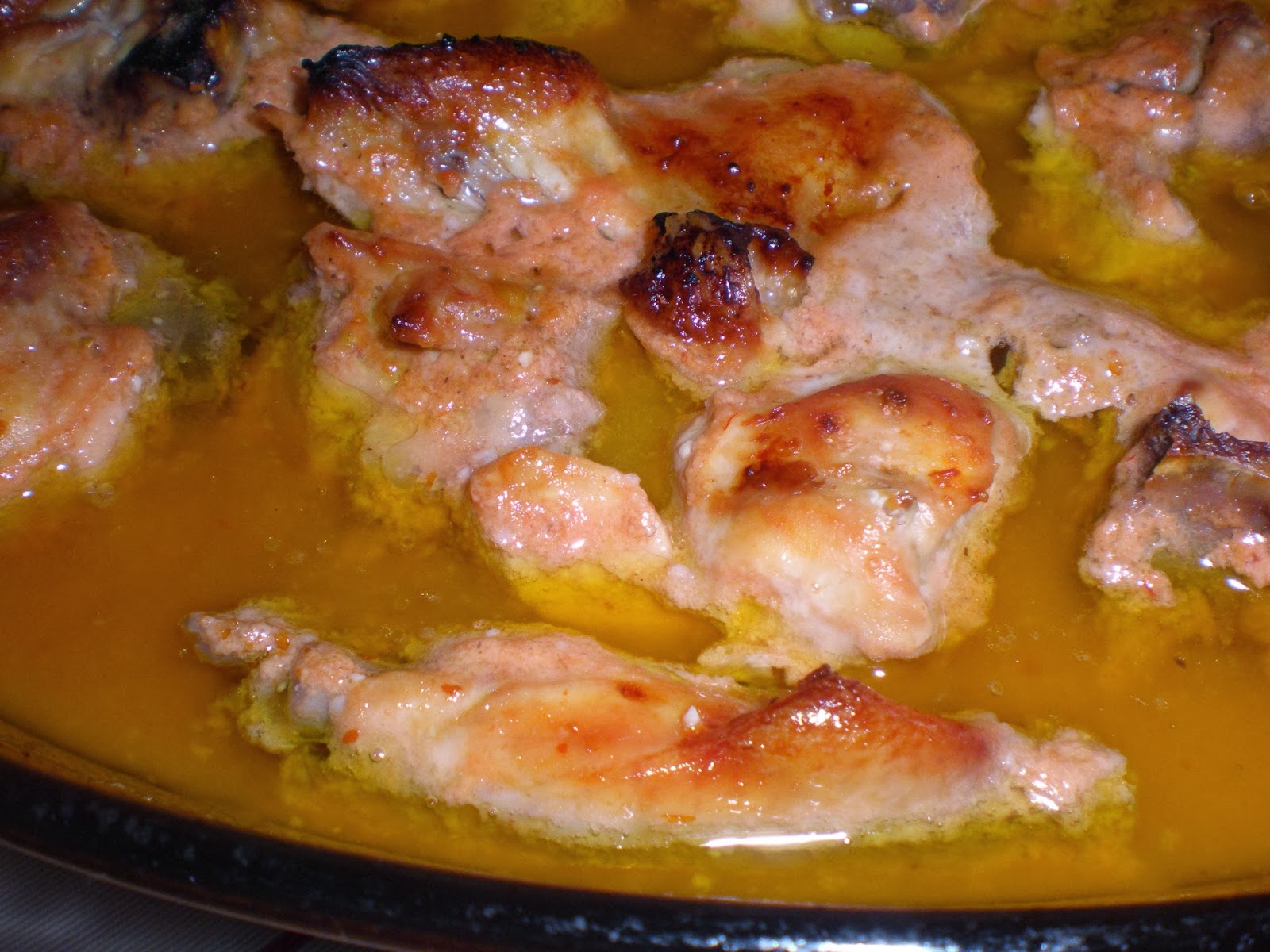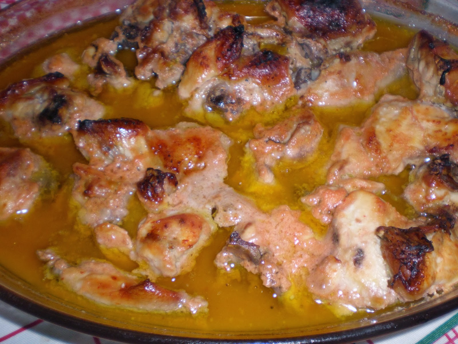 Misturei tudo e envolvi o frango na mistura. Depois foi ao forno por sensivelmente uma hora a 200ºC.